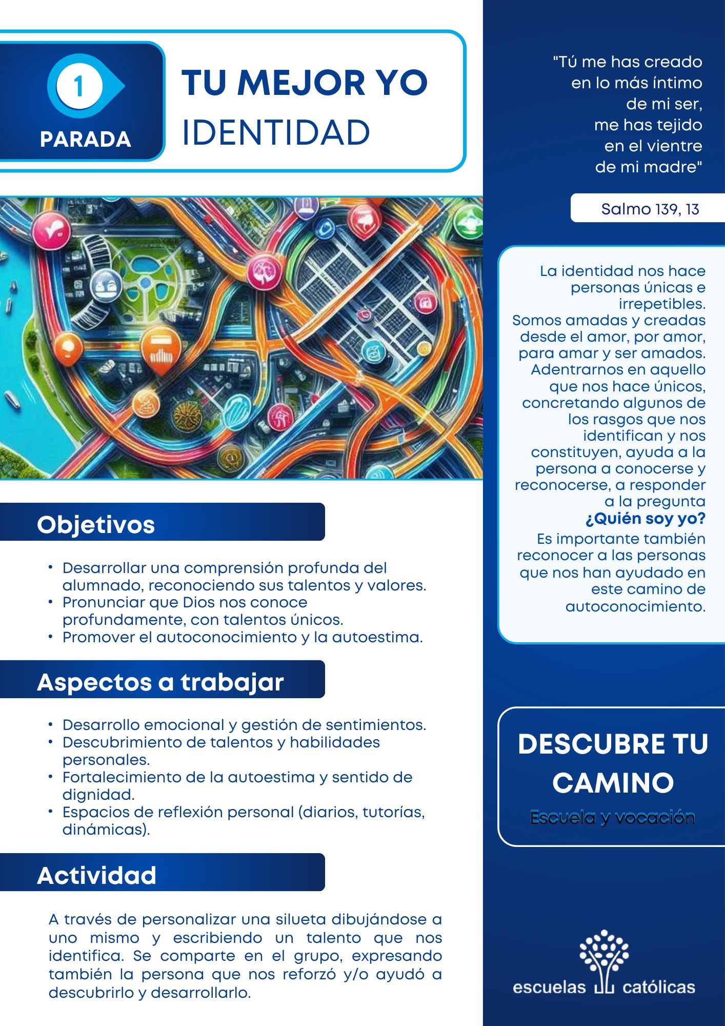 Propuesta para trabajar la identidad de EC y su eje en Jesús con el claustro de nuestros centros. Desde un espacio grupal, busca identificar las señas de nuestra identidad cristiana en el día a día de nuestros centros. Invita también a encontrar propuestas concretas para seguir creciendo en nuestra identidad.